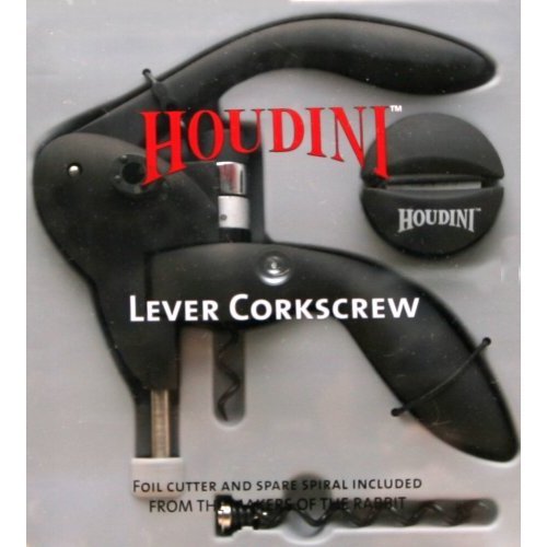 • Includes a silver Houdini lever-style corkscrew, extra spiral, pourer/stopper, wine/champagne sealer, and foil cutter