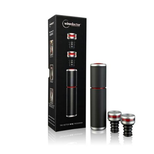 Winedoctor kit classic keeps good wine from going bad. The classic includes 2 intell-stoppers and 1 grip-touch pump that works with the intell-stopper to remove the precise amount of air from wine bottles, ensuring that even days later, wine will be as fresh and fragrant as when it was opened. The intelli-stopper is a new high-tech "cork" that virtually eliminates wine losing flavor and aroma in unfinished bottles for over a week. The winedoctor kit classic allows wines to store flat or standing to maximize chilling and storage space.